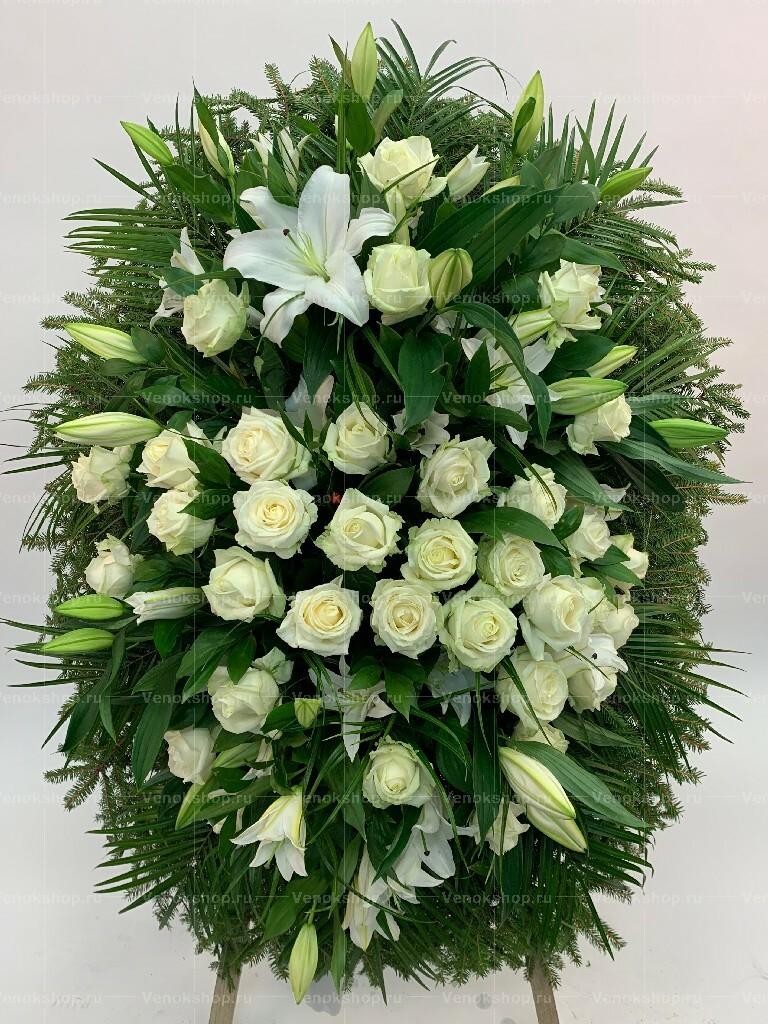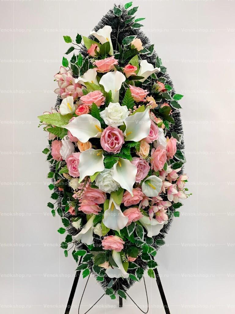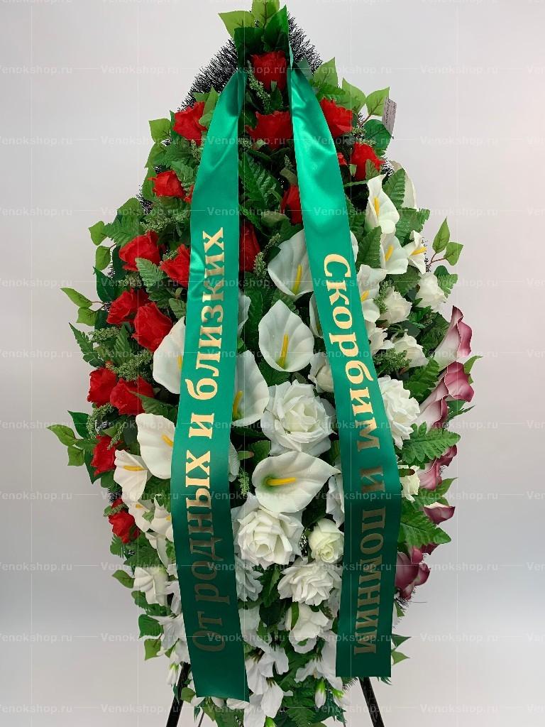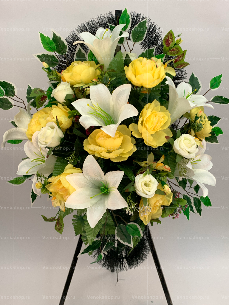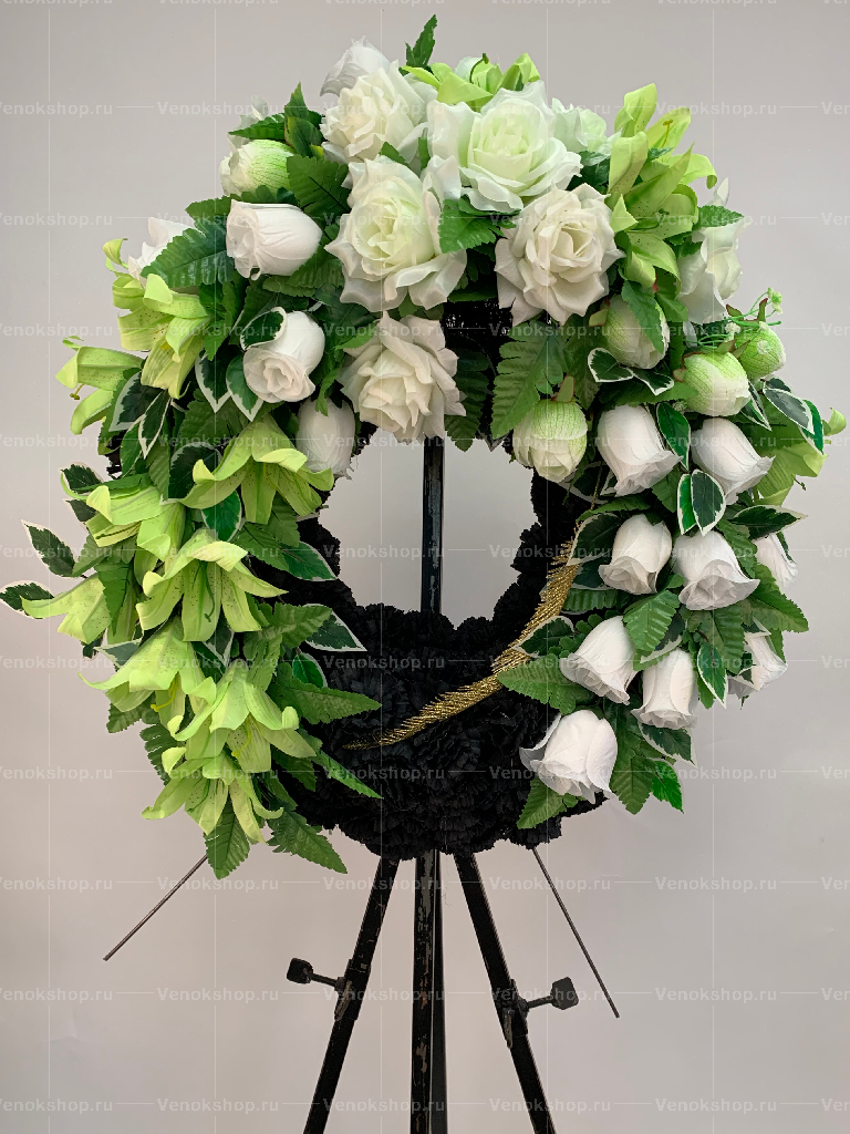 - Цветовая гамма: Традиционно для ритуальных венков используются темные и сдержанные цвета, такие как бордовый, темно-зеленый и белый. Однако можно выбрать и другие цвета, которые символизируют усопшего.